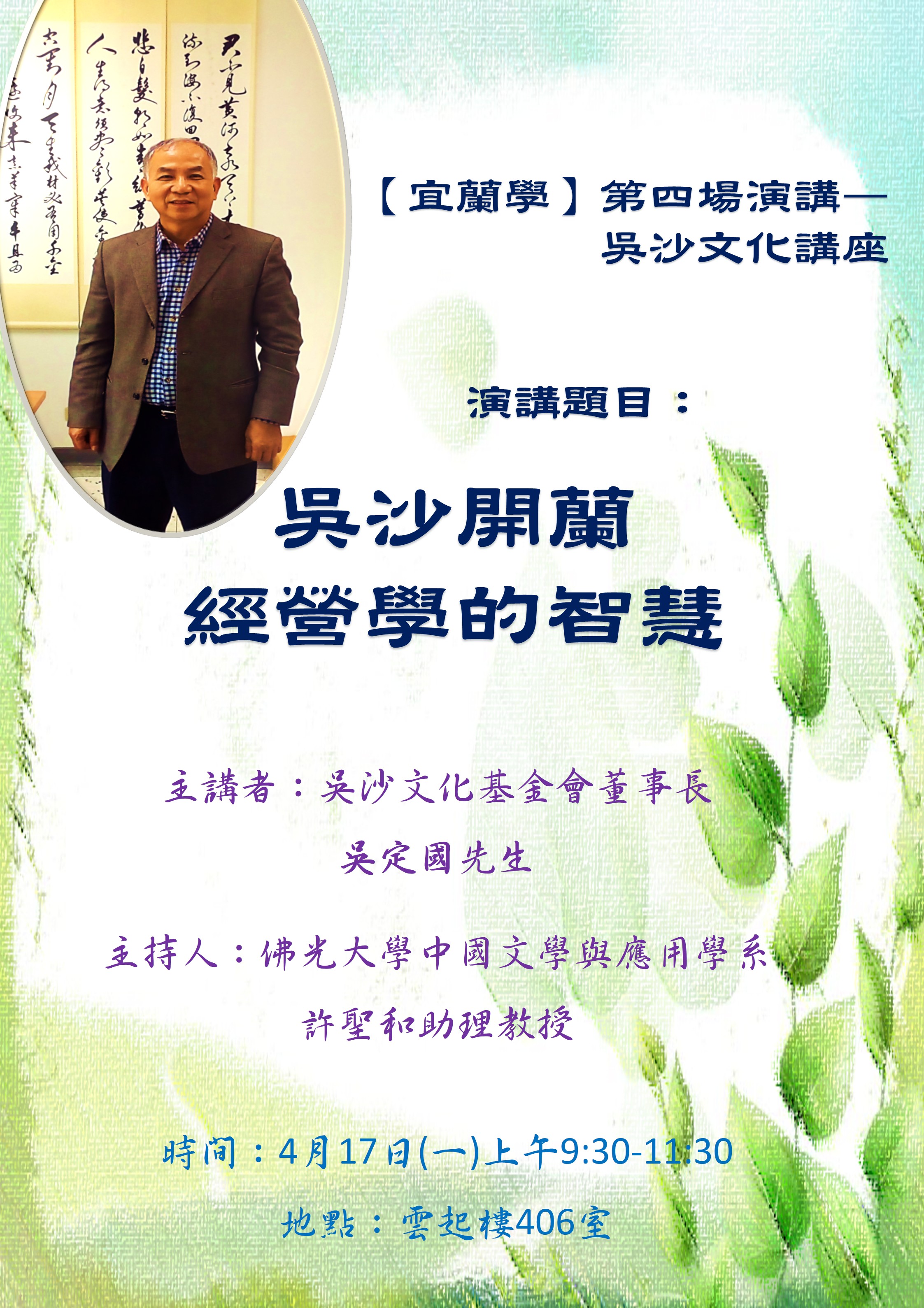 【演講公告】吳沙開蘭經營學的智慧(2017.04.17)